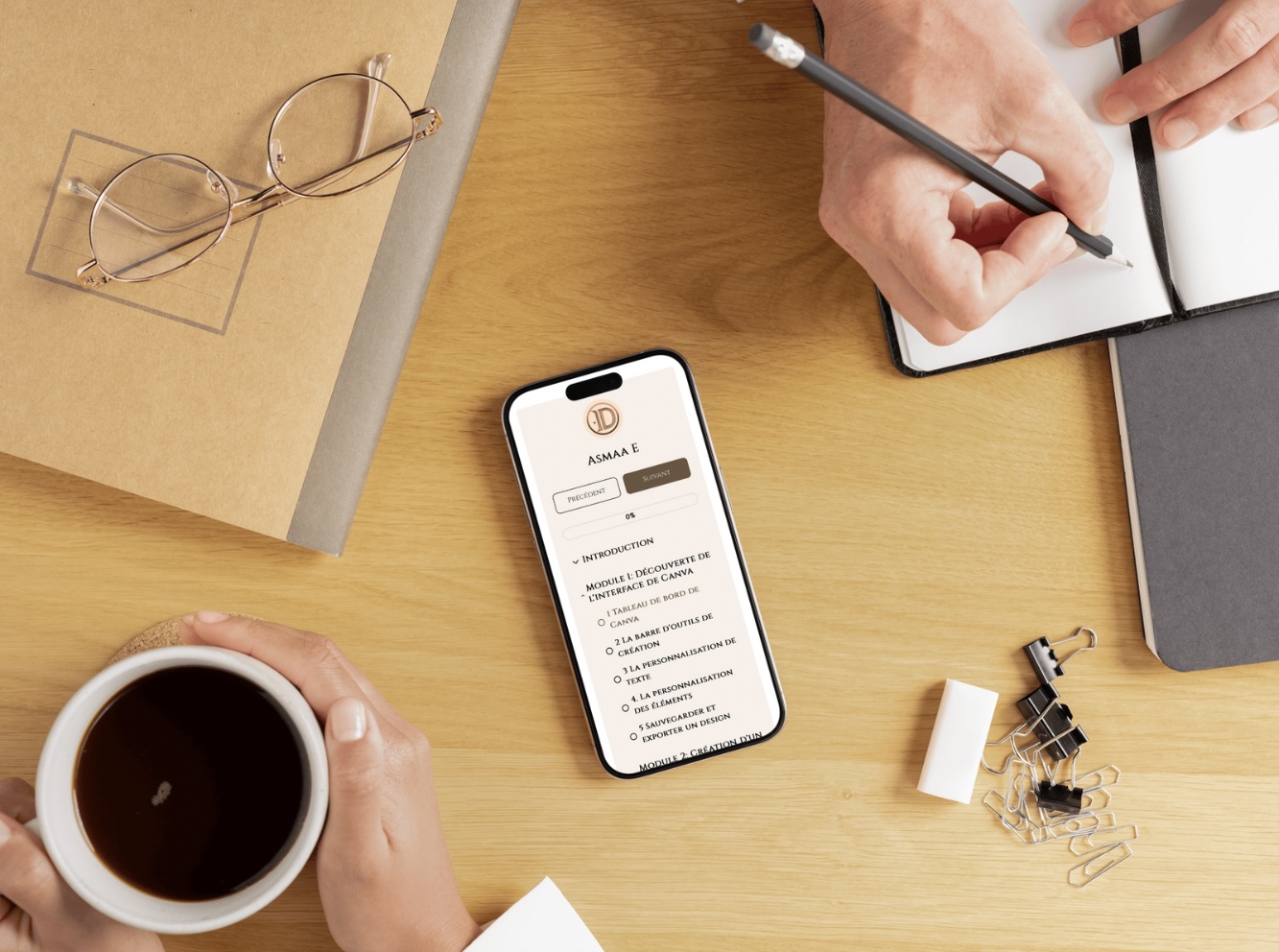 Tu auras simplement besoin d’un ordinateur,d'une tablette ou de ton téléphone; d’une connexion Internet, et d’un compte Canva (gratuit ou pro). Tout le reste est fourni au sein de la formation.